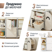 Эта модель стеллажа идеально подойдет для хранения игрушек и других детских вещей, благодаря высокому качеству материалов и точной конструкции. Главное преимущество этого стеллажа - это безопасность материалов, из которых он изготовлен.
