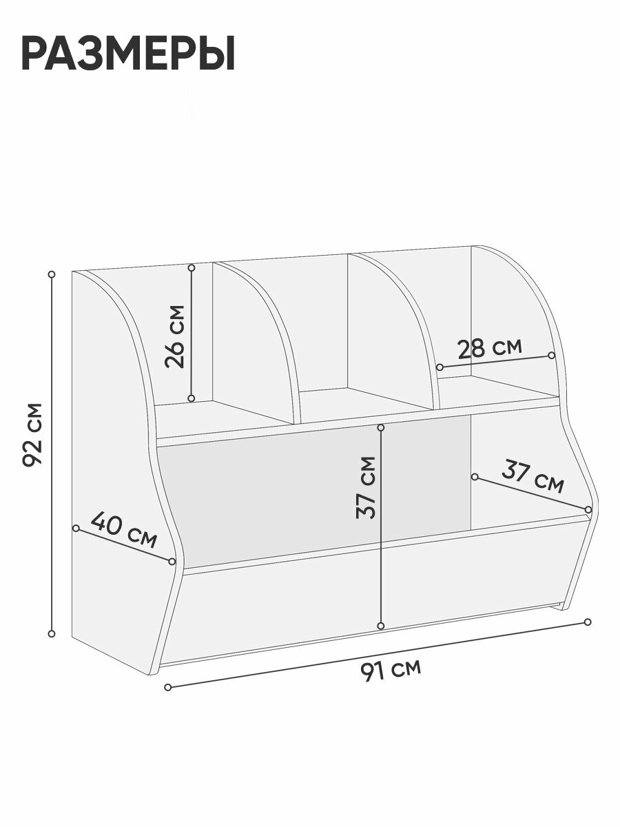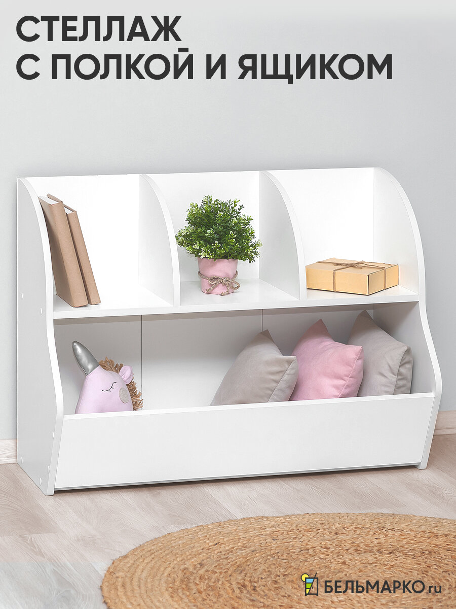 Стеллаж для игрушек в детскую обеспечивает идеальное хранение и организацию детских вещей. Этот напольный вариант выполнен в стильном белом цвете, который легко впишется в любой интерьер. Он включает удобную полку и ящик, что позволяет не только аккуратно хранить игрушки, но и поддерживать порядок в комнате.