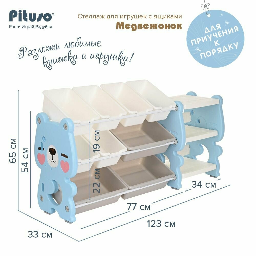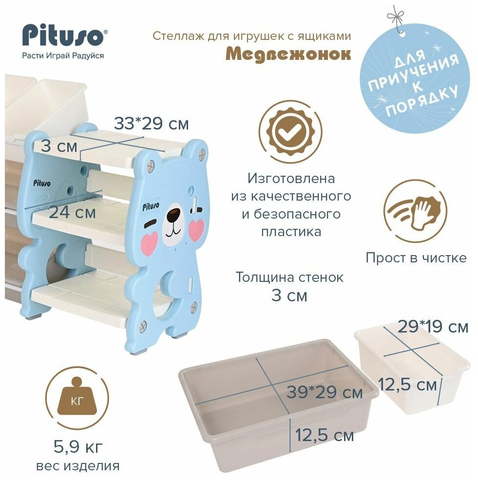 Стеллаж для игрушек в детскую Pituso Медвежонок, 2 секции, 3 полки с ящиками, цвет голубой ZZQ: сравнение цен, характеристики, фото, актуальное наличие и цены.