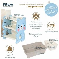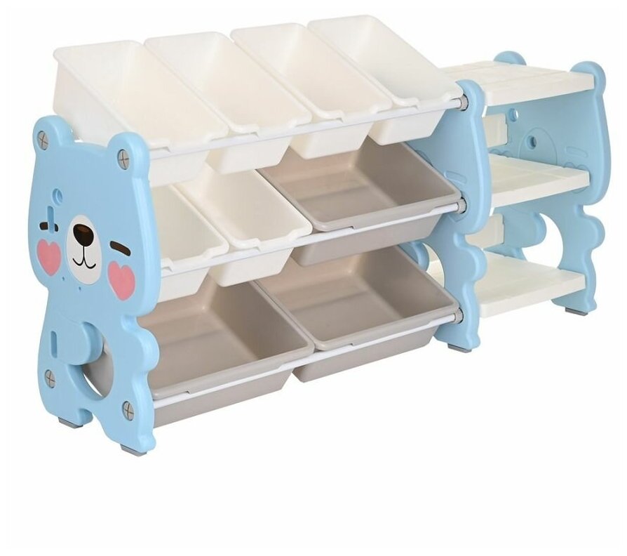 Купить Стеллаж для игрушек в детскую Pituso Медвежонок, 2 секции, 3 полки с ящиками, цвет голубой ZZQ с доставкой по всей России.