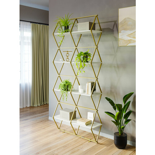 Стеллаж для книг KM LOFT Ромбо золотой/белый лофт для дома в гостинную перегородка: сравнение цен, характеристики, фото, актуальное наличие и цены.