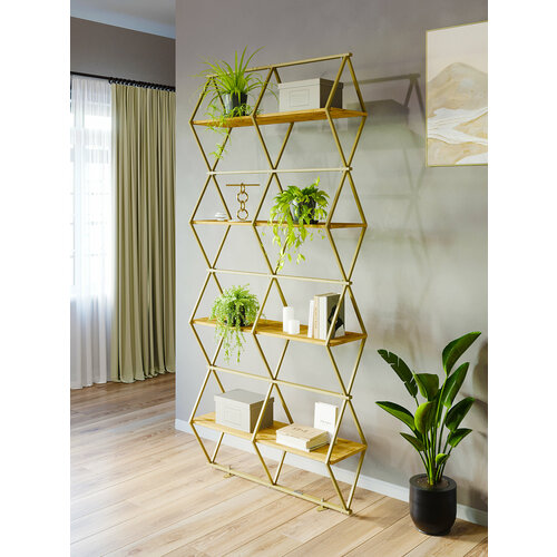 Стеллаж для книг KM LOFT Ромбо золотой/вотан лофт - это утонченная геометрия стиля, внешняя эстетика и надежность для красоты и уюта вашего дома.