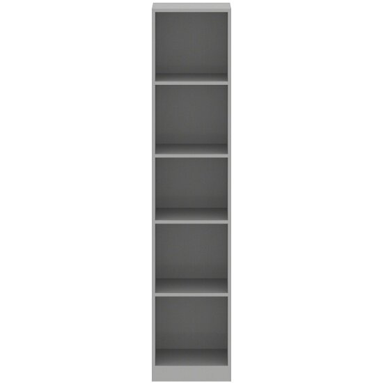 Высокий и узкий стеллаж SIMPLE для офисного или домашнего использования. Размеры - 386х1815х359 мм, цвет - Серый. Имеет четыре открытые полки. Надежная защита торцевых поверхностей - кромка ПВХ. Стеллаж оснащен регулируемыми опорами для компенсации неровностей пола.