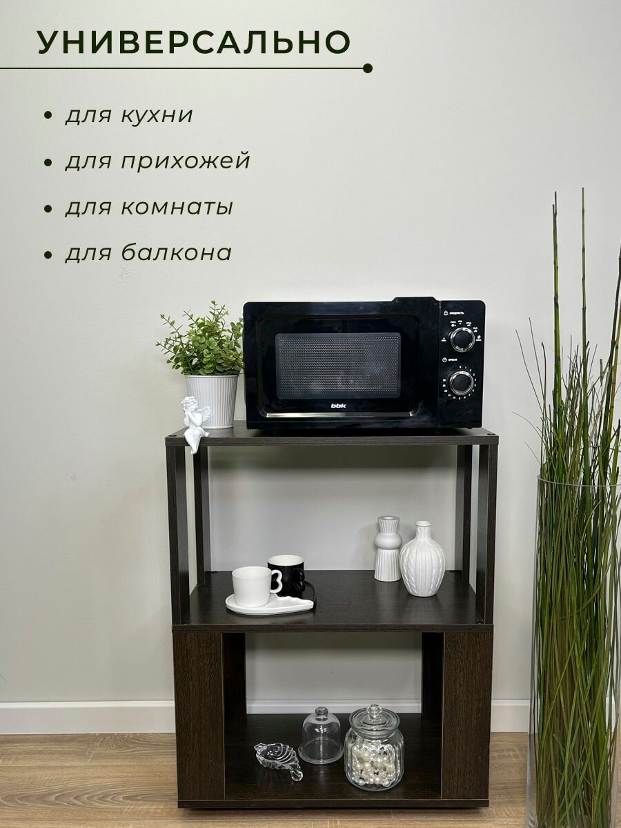 Этот напольный деревянный стеллаж, изготовленный из высококачественной ЛДСП, станет отличным решением для организации пространства и поддержания порядка в любом уголке вашего дома. Его можно использовать как напольную полку на кухне для микроволновой печи, чайника или кофемашины. Широкие и глубокие полки идеально подойдут для хранения посуды и кухонных принадлежностей. Универсальный стеллаж будет полезен в любой комнате: гостиной, спальне, детской, прихожей, на балконе или даже на даче. В детской комнате он прекрасно подойдет для учебников, книг и игрушек, что делает его удобным предметом мебели для школьника, ученика или студента.