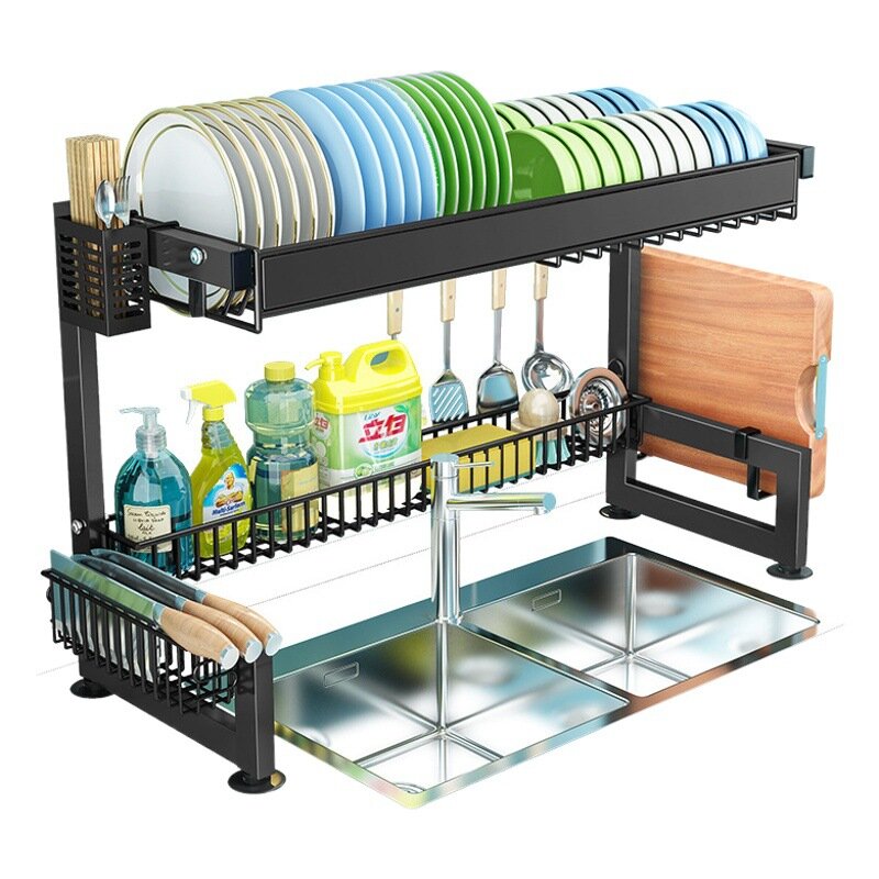 Особенность данного стеллажа заключается в его функциональности. Он не только служит для хранения посуды, но и может быть использован для слива раковины, что позволяет сэкономить место на кухне и делает процесс уборки более удобным.