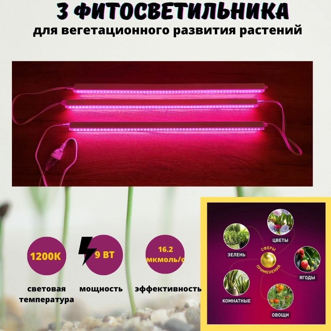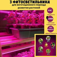 Стеллаж + Фитосветильники 3 шт. красно-синего спектра для периода вегетации 9Вт каждый