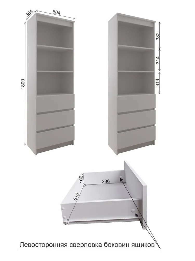 Информация от производителя: Обращаем ваше внимание, что рассверловка боковин ящиков является односторонней (по левой стороне).
