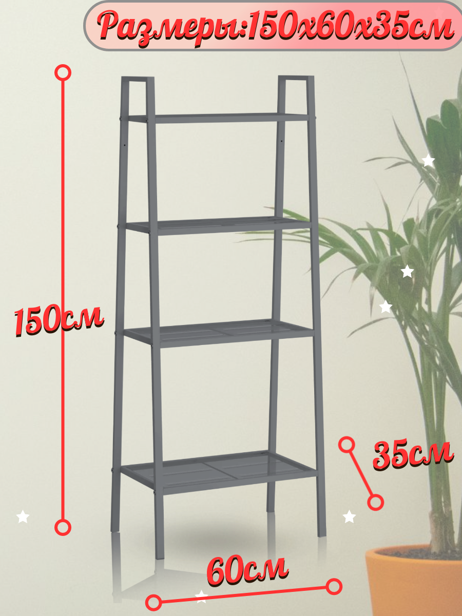 Стеллаж-этажерка Loft, напольный, металлический, серый, 4 яруса, 60х34х150см: сравнение цен, характеристики, фото, актуальное наличие и цены.