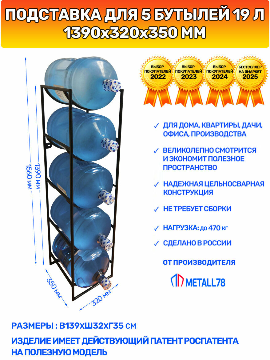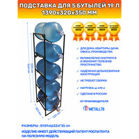 Подставка для 5 бутылей 19 литров, В1390хШ320хГ350 мм, стеллаж, этажерка, полка, бутылочница, цвет чёрный: сравнение цен, характеристики, фото, актуальное наличие и цены.