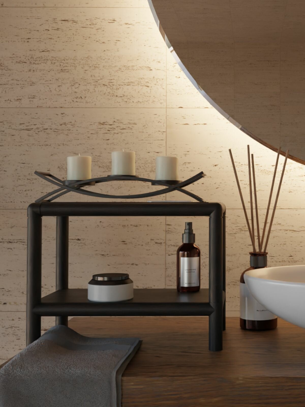 Полки и трубы – металлические, покрашены чёрной матовой антикоррозийной порошковой краской.