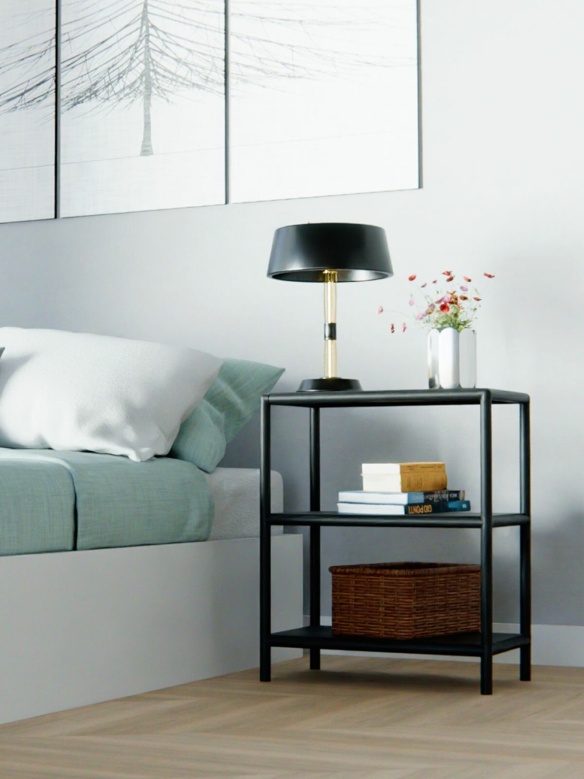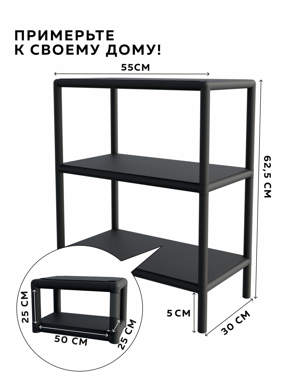 Полки и трубы – металлические, покрашены чёрной матовой антикоррозийной порошковой краской.