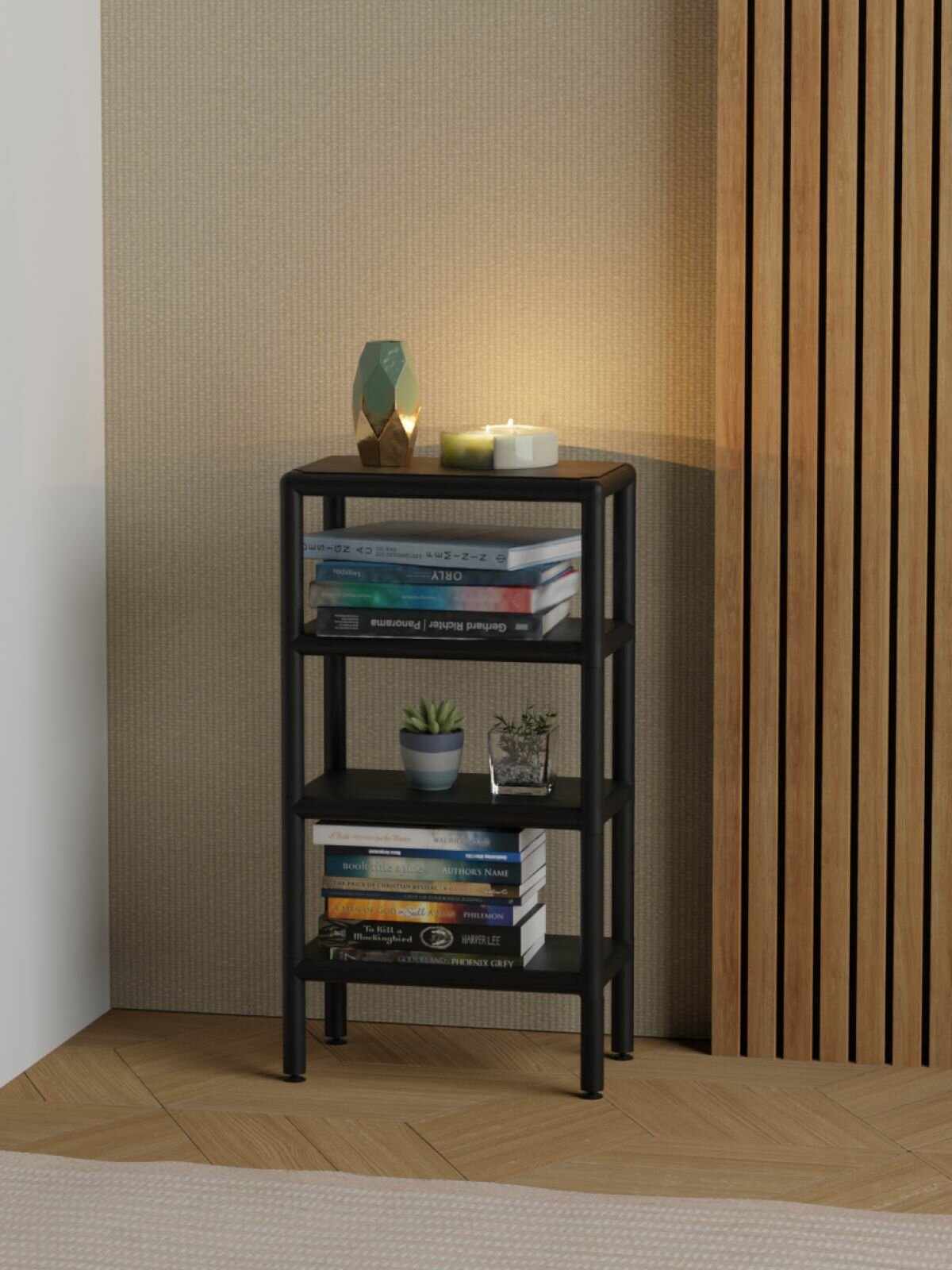 Невысокие стеллажи можно использовать как журнальный столик, и выбрать любой размер.
