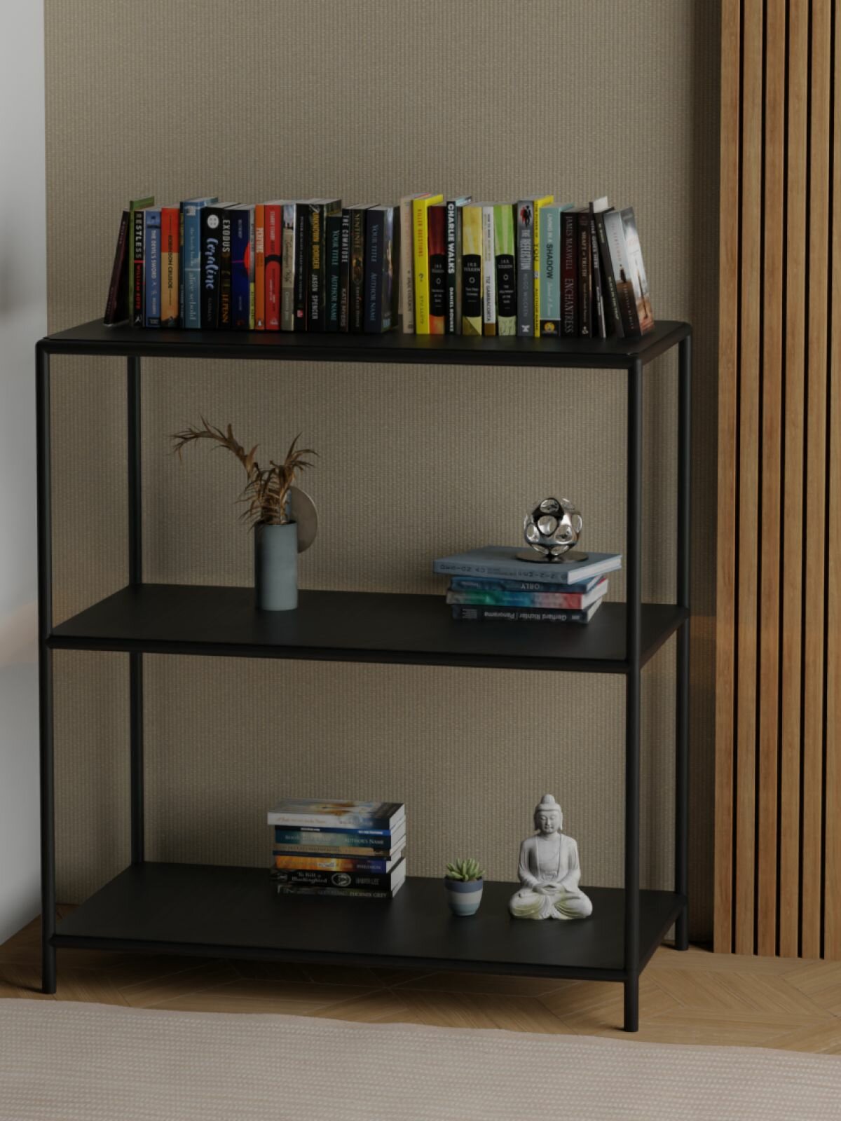 Невысокие стеллажи можно использовать как журнальный столик, и выбрать любой размер.