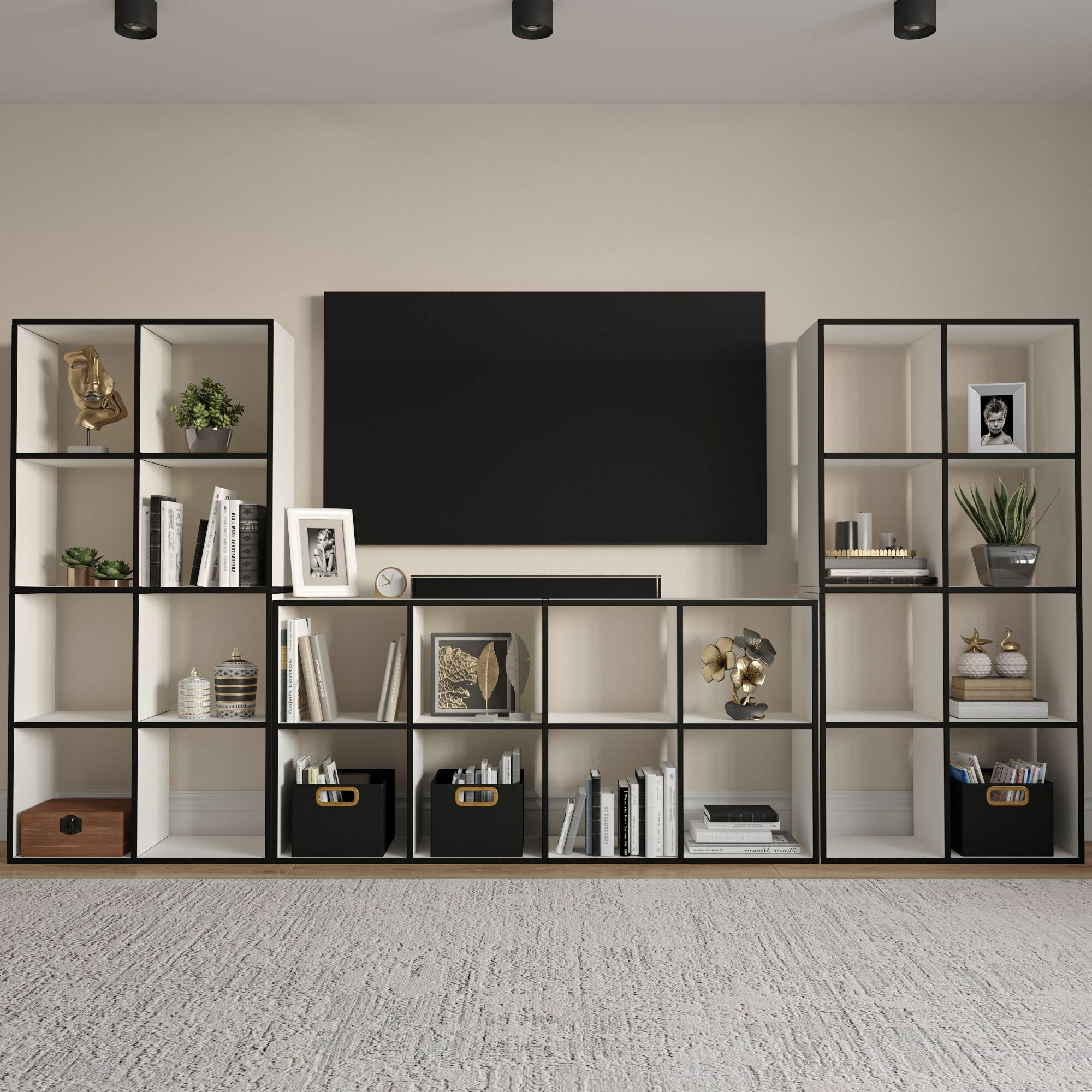 Высокий сборный стеллаж из ламинированного ДСП (ЛДСП) белого цвета с черной кромкой — идеальный вариант для открытого хранения в любом уголке вашего дома! Этот стильный и практичный шкаф состоит из 8 функциональных секций. Размеры готовой конструкции: 67,8x29,5x140,4 см. Размеры каждой секции — 31,5x29,5x33,1 см, что позволяет разместить книги любого формата, игрушки, декоративные фигурки и любую другую домашнюю мелочь. Стеллаж станет незаменимым помощником в детской комнате, гостиной, спальне, на кухне, в прихожей или в офисе, обеспечивая удобное и организованное пространство.