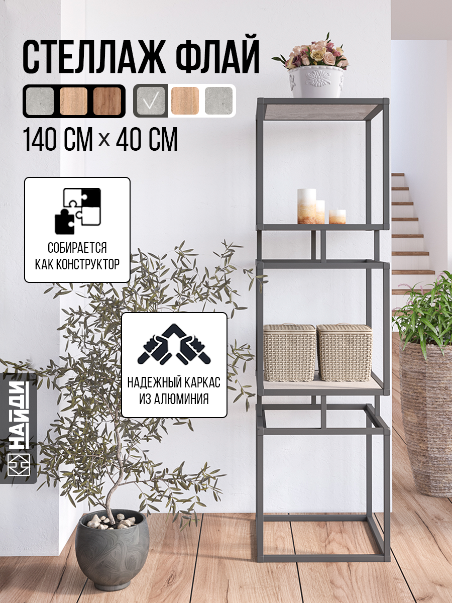 Купить Стеллаж ФЛАЙ металлический с ЛДСП Бетонный камень, графит 40х40х140 см. с доставкой по всей России. Стеллаж ФЛАЙ металлический с ЛДСП Бетонный камень, графит 40х40х140 см.: сравнение цен, характеристики, фото, актуальное наличие и цены.