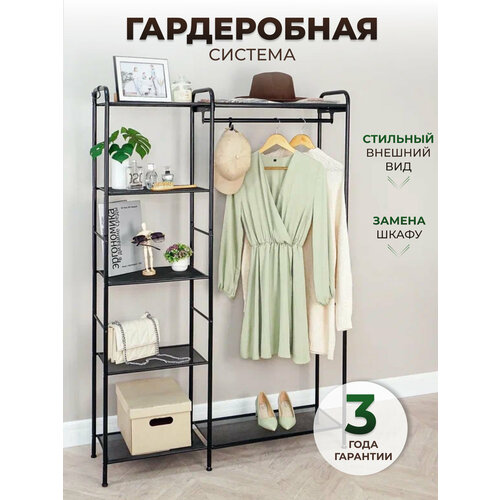 Гардероб от бренда «MELOTE» - это стильный и функциональный способ хранения вещей. Изделие черного цвета состоит из двух модульных частей: стеллажа с напольной вешалкой и прихожая в коридор. Каркас изделия, выполненный из высококачественного материала - стали с полимерным покрытием - отличается прочностью и долговечностью креплений. Многофункциональная металлическая этажерка заменит шкаф и найдёт применение в любой комнате вашей квартиры: гостиной, коридор, прихожая, гардеробной, кладовке. Она подойдёт не только для бытового использования на даче или дома, но и станет отличным офисным органайзером, заменив шкафчики. К тому же стойка открытая конструкция позволяет быстро найти нужные вещи. Этот разборный предмет мебели российского производства впишется в любой интерьер. Двойная универсальная железная вешалка имеет вертикальное расположение. На полочках можно хранить обувь, белье, различные аксессуары, книги, шляпы, сумки, игрушки вашего ребенка, мужские и женские вещи и другие принадлежности. На большой обувной полке разместятся все ваши туфельки и кроссовки. Сборная стеллажная система оснащена перекладиной с крючками. Она подойдет для плечиков с одеждой или зонтов. Популярная ярусная модель с секциями очень компактная и мобильная, поэтому ее можно без труда переместить в любую комнату. Это эстетичный интерьерный предмет для правильной организации хранения и порядка, он облегчит уборку и добавит в домашнее пространство уюта. Стеллаж пригодится для всей семьи. Он универсален и подойдет для вещей мужчин, женщин, школьников - подростков, маленьких девочек и мальчиков. Система может пригодиться в качестве дополнительного временного способа хранения. Это волшебное средство для порядка в доме и хороший подарок для любимой жены, мамы, бабушек.