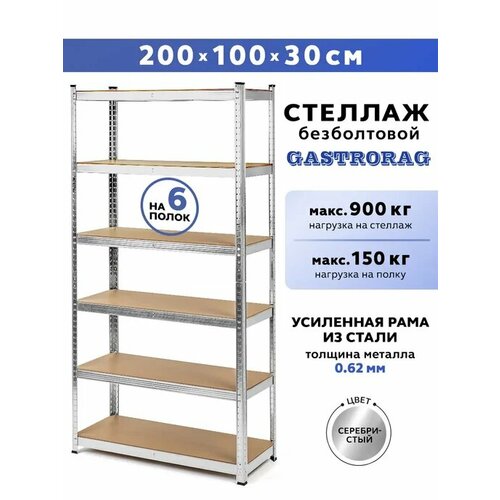 Стеллажи металлические безболтовые Gastrorag GR-001-1 200х100х30/6 – это универсальная 6 ярусная система хранения, которая обеспечивает оптимальную организацию пространства и наведение порядка. Используйте их для складирования различных предметов в гараже и саду, кладовой, кладовке, погребе и подсобке, на балконе и лоджии. Изделия выполнят функцию металлической мебели в стиле лофт для квартиры, дома, дачи и офиса. Они также подойдут в качестве больших торговых или складских систем для магазина, склада или ПВЗ. Стелаж лофт 6 секций можно использовать как перегородку для зонирования пространства гостиной, спальни, гардеробной и других помещений, металлического органайзера, напольной полки для хранения вещей, инструментов, домашних заготовок и консервации, подставки для обуви в прихожую, открытой этажерки для одежды, книг и игрушек, книжного шкафа, кухонной стойки для посуды или полочки для микроволновки на кухню. В садоводстве он пригодится под рассаду, комнатные цветы и садовые растения. Он также сможет послужить офисной мебелью для хранения архивных папок с документами и размещения оргтехники. Железный не окрашенный хозяйственный шкаф поставляется в разобранном виде. Многофункциональный трансформер укомплектован четырьмя вертикальными стойками, которые состоят из двух частей. Благодаря этому вы сможете собрать как один стеллаж высотой 200 см с 6 отделениями, так и 2 стеллажа высотой 100 см с 3 полками. Каркас изготовлен из полированной оцинкованной стали, устойчивой к коррозии. Толщина металла 0.62 мм. Материал полок - влагостойкий МДФ без покрытия толщиной 4 мм, который может в течение длительного времени выдерживать повышенную влажность воздуха. Его можно размещать и в ванной комнате, однако прямого попадания жидкости на поверхность следует избегать. Сборный высокий шкаф 6 ярусов имеет практичное безболтовое соединение (тип крепления - лепесток) и легко собирается при помощи деревянной или резиновой киянки, лепестки при необходимости можно слегка отогнуть отверткой. В комплект входят пластиковые подпятники, которые предохраняют пол от повреждений. При правильной сборке, когда все лепестки вставлены в обе парные прорези, конструкция становится прочной, надежной и отличается долговечностью. Нагрузка на полку - до 150 кг, на весь стелаж - до 900 кг. Ширина полочки 100, глубина 30 см. Высота полок регулируется с шагом 3 см. Изделие является сборно разборным, в конце сезона рассады его можно разобрать и убрать до следующего года. В целях обеспечения дополнительной прочности и устойчивости рекомендуется ставить его вплотную к стене и дополнительно крепить к стене.