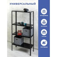 Полочки и стойки изготовлены из стали с порошково-полимерным покрытием, которое защищает от коррозии и позволяет использовать этажерку в помещениях с повышенной влажностью воздуха, например, в ванной комнате. Открытые напольные стеллажи 4 яруса легко собираются при помощи входящих в комплект болтов и гаек.