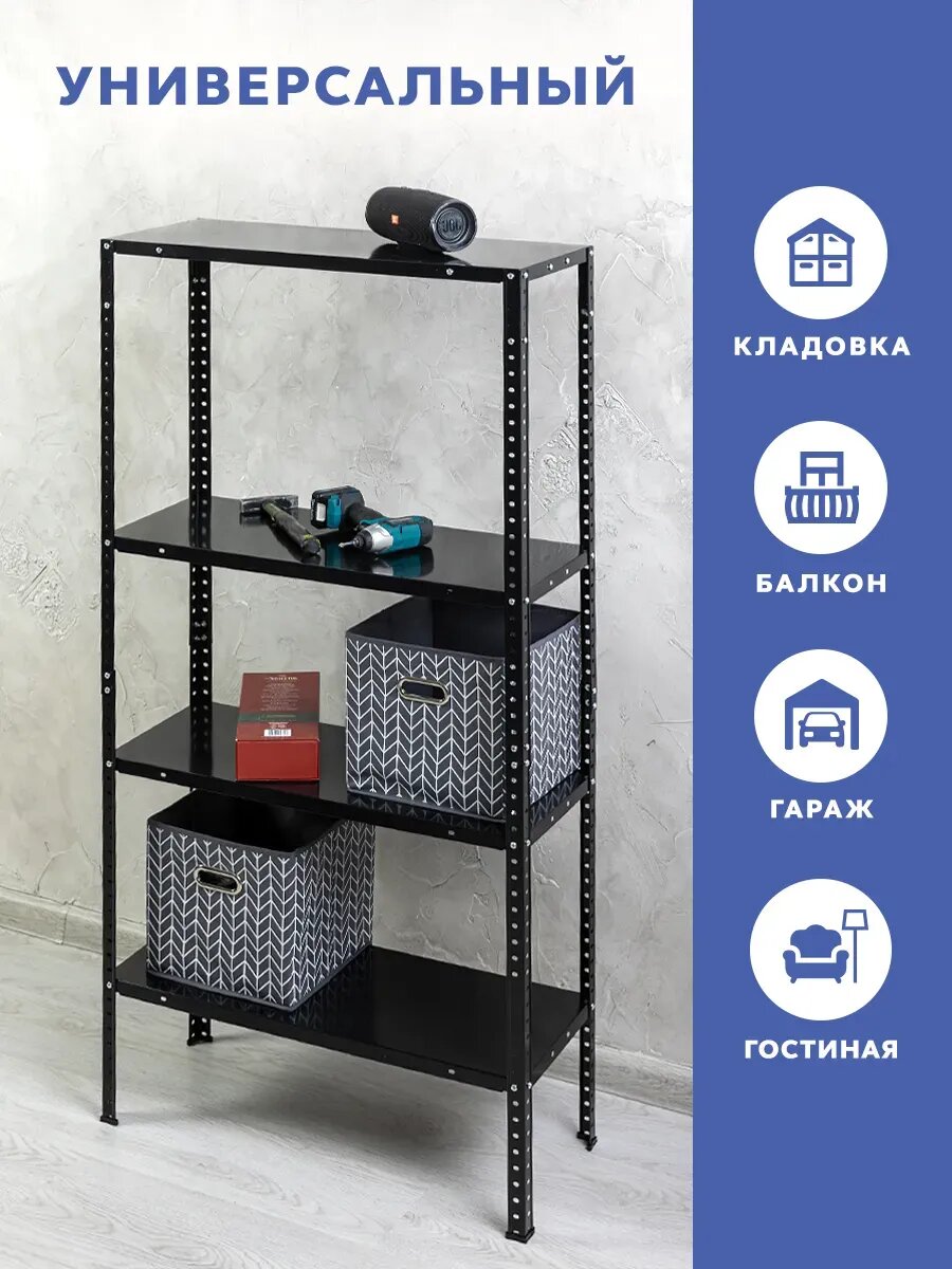 Комплект металлических болтовых стеллажей 2 шт. Gastrorag GR-005-2 размером 150х75х30 см – это универсальная 4 ярусная система хранения различных предметов для гаража и сада, кладовой, кладовки и подсобки, балкона и лоджии, металлическая мебель в стиле лофт для квартиры, дома, дачи и офиса. Они также подойдут в качестве больших торговых или складских стеллажей для магазина.