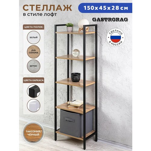 Стеллаж Gastrorag Loft, 149x45x28 см, 5 полок, металлический каркас: сравнение цен, характеристики, фото, актуальное наличие и цены.