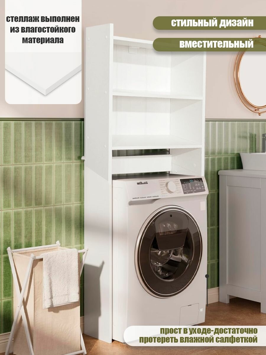 Стеллаж GOOD HOME, над стиральной машиной, ЛДСП, белый, 64 см x 22 см x 150 см: сравнение цен, характеристики, фото, актуальное наличие и цены.