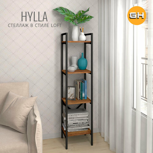 Стеллаж HYLLA LOFT, коричневый, напольный, модульный шкаф с 4 деревянными полками, 141х34х30 см, гростат: сравнение цен, характеристики, фото, актуальное наличие и цены.