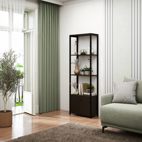 Купить Стеллаж интерьерный металлический лофт напольный с тумбой и 3 полками БРУКЛИН (180х60х28см) Дуб Венге с доставкой по всей России.