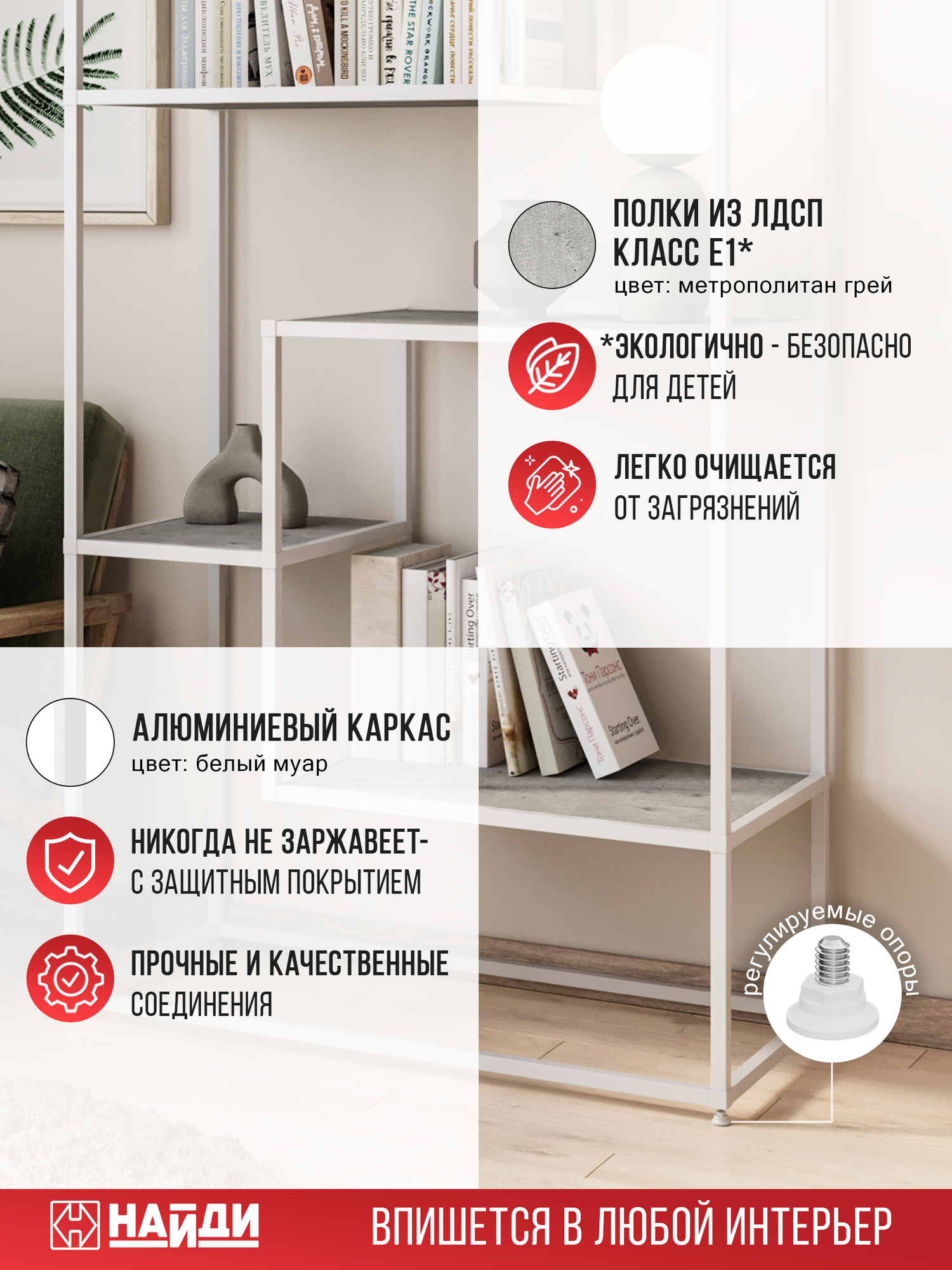 Стеллаж книжный найди металлический с серым ЛДСП Метрополитан Грей, белый матовый: сравнение цен, характеристики, фото, актуальное наличие и цены.