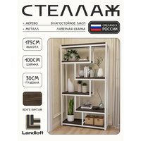 Купить Стеллаж Landloft «Бергер» Лофт, открытый, универсальный, цвет венге винтаж с доставкой по всей России.