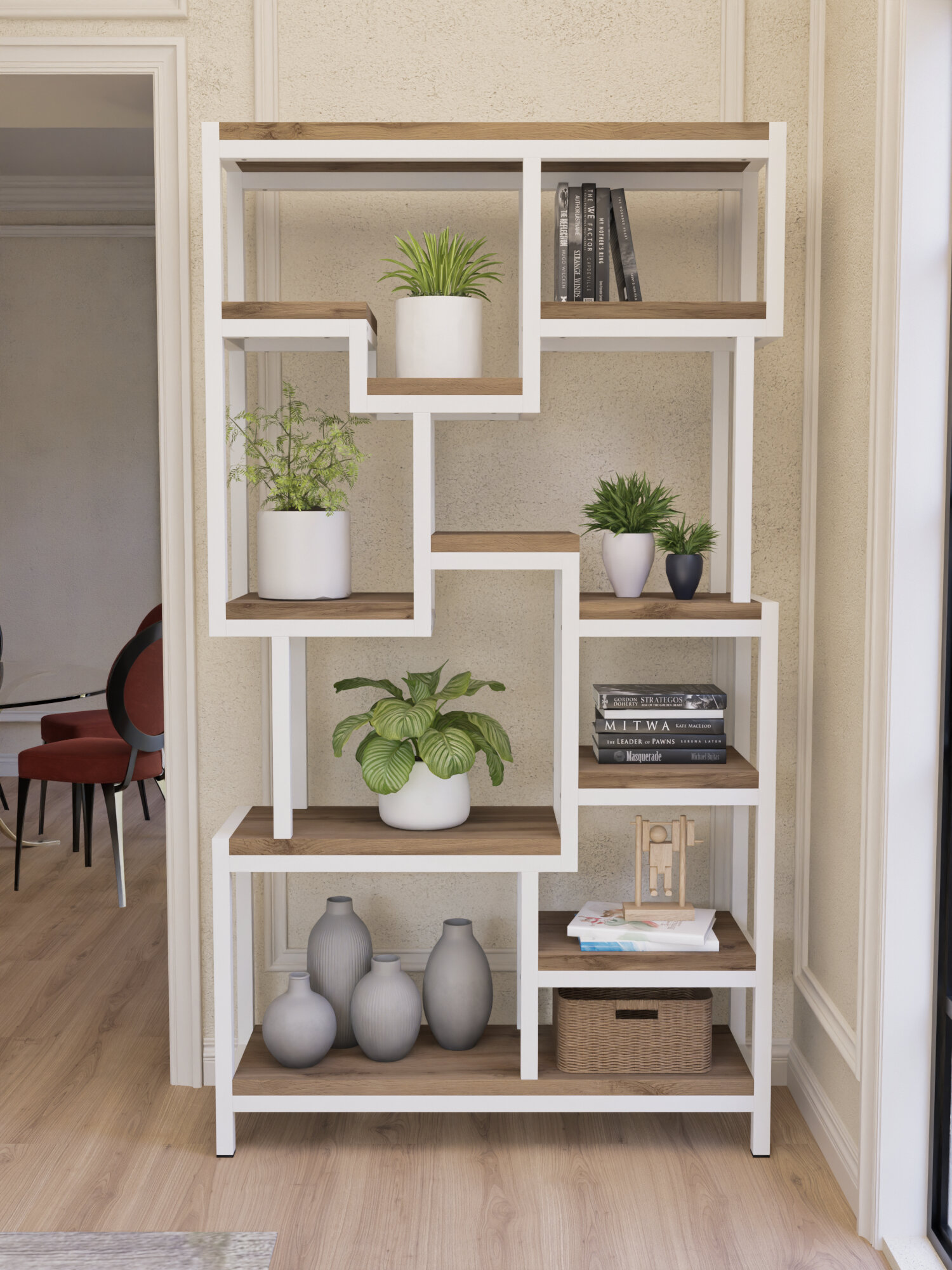 11 полок различной площади предлагают широкую вариативность для хранения вещей и возможность интеграции стеллажа в любое помещение. Дизайнерская асимметрия визуально облегчает конструкцию, помогая не перегружать пространство, даже если вы решите использовать все полки для хранения габаритных вещей.