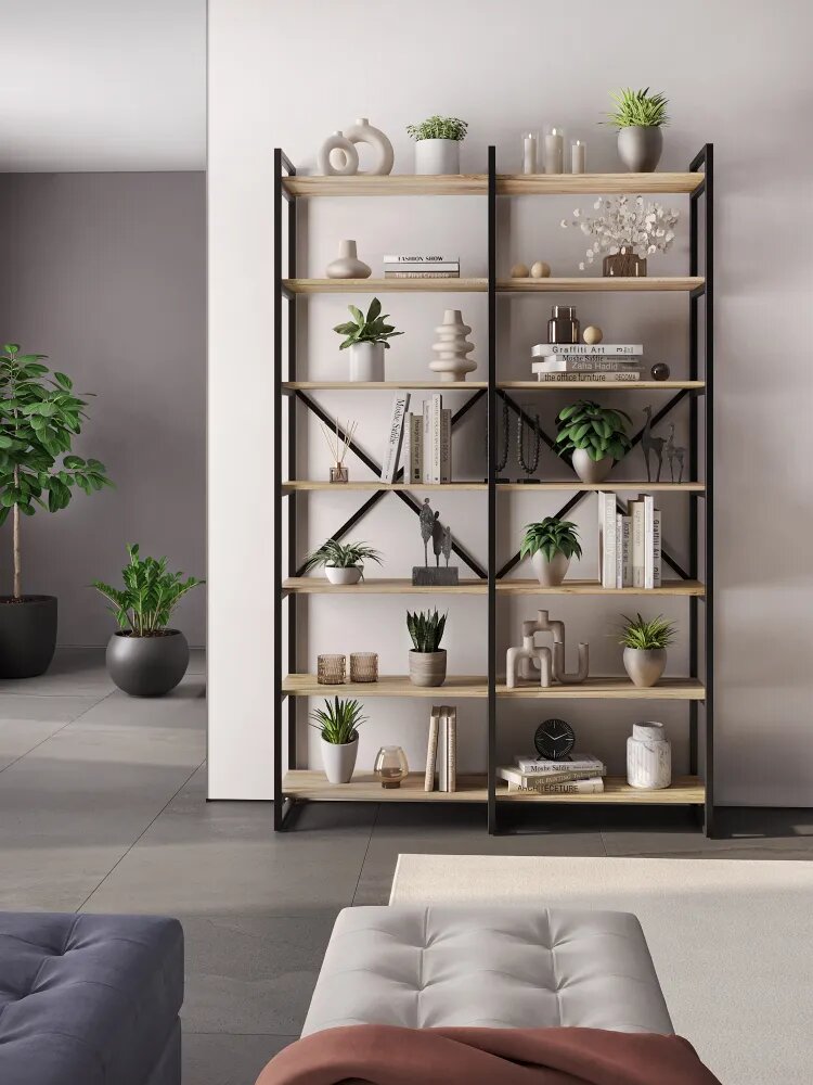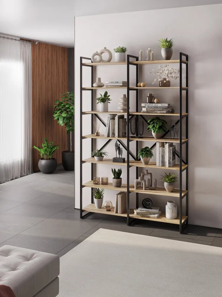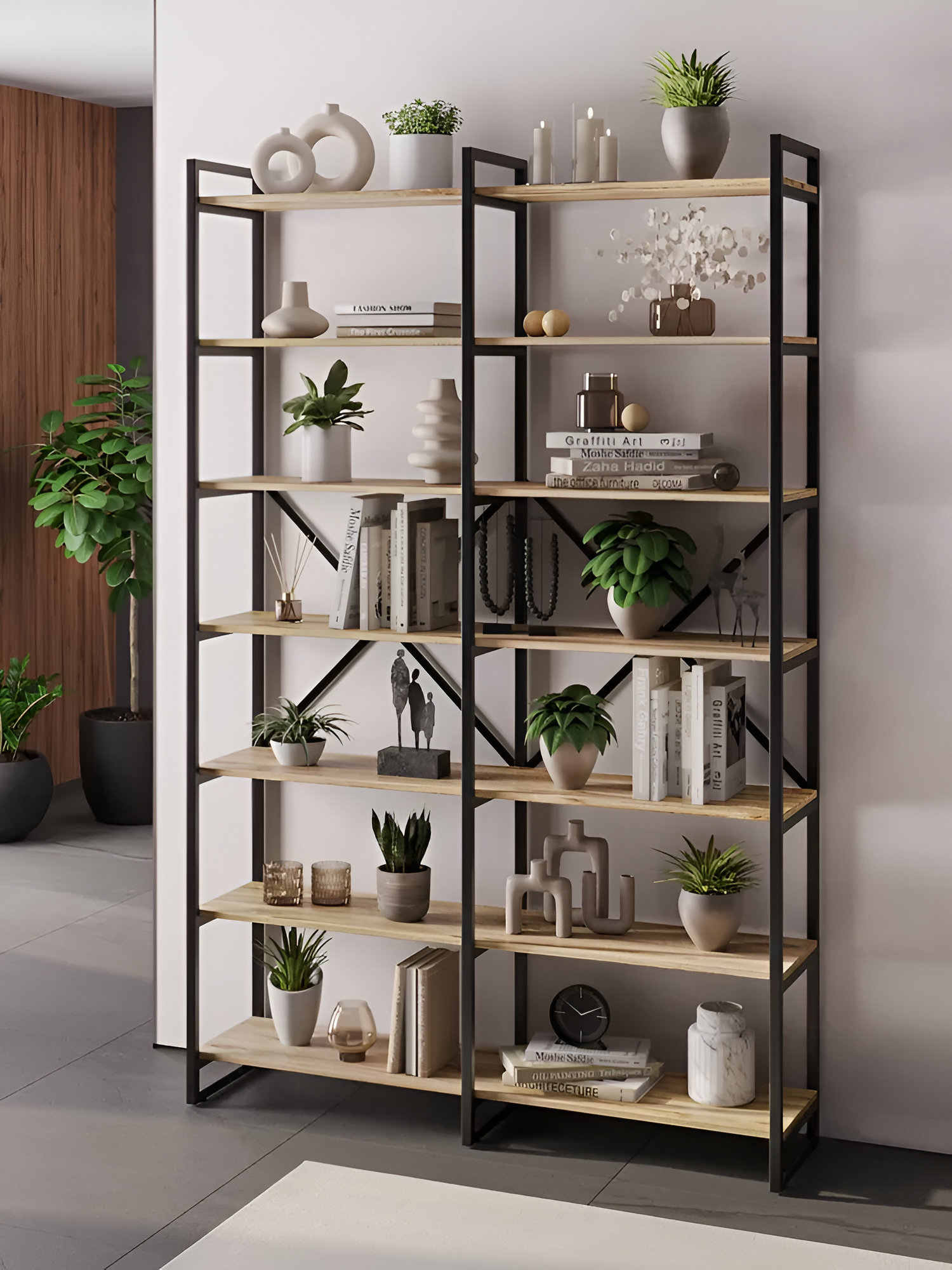 Купить Стеллаж лофт BRUNO DOUBLE 7 полок (210х134х34 см) Дуб Вотан. с доставкой по всей России.