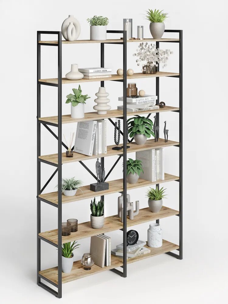 Стеллаж лофт BRUNO DOUBLE 7 полок (210х134х34 см) Дуб Вотан.: сравнение цен, характеристики, фото, актуальное наличие и цены.