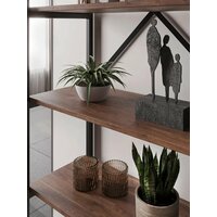 Уникальный дизайн и материалы: стеллаж выполнен в стиле лофт, сочетающем в себе элементы промышленного дизайна и современные материалы. Металлический каркас и деревянные полки из ЛДСП в оттенке "Американский орех" создают уникальное сочетание, которое станет ярким акцентом в любом интерьере.