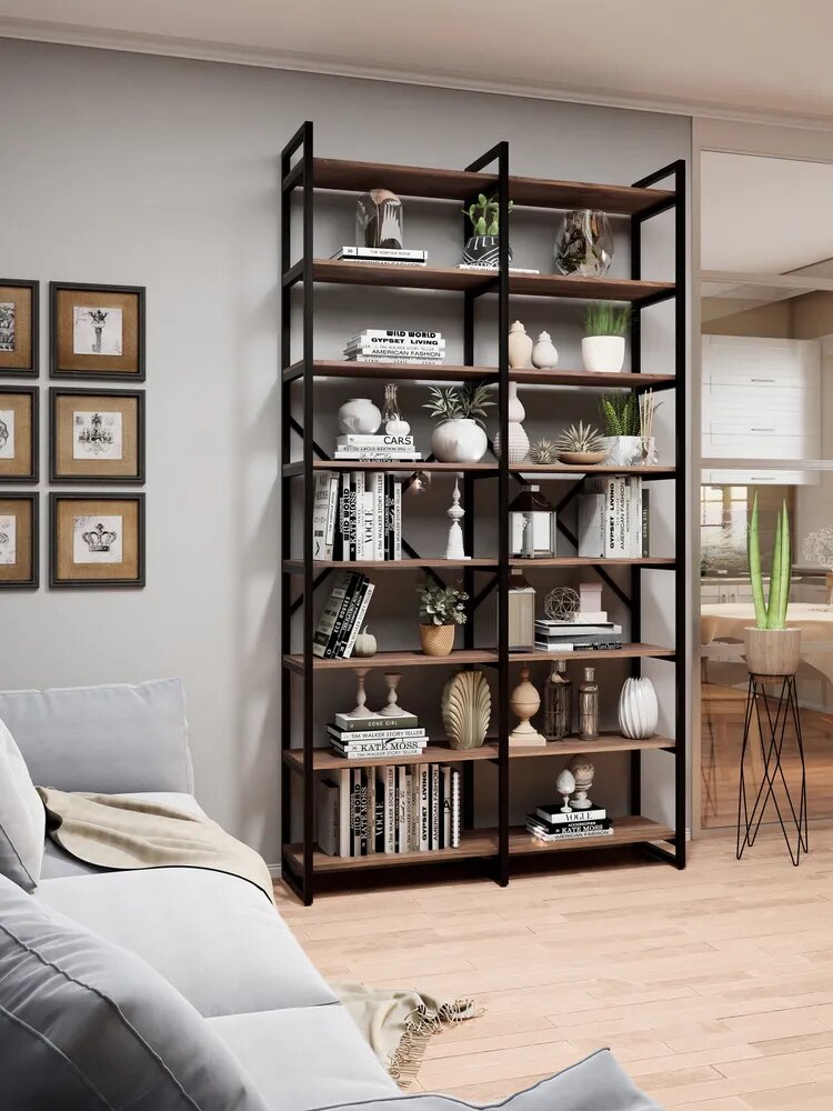 Многофункциональность: стеллаж лофт BRUNO DOUBLE может использоваться для хранения книг, растений, игрушек, зонирования пространства или демонстрации коллекций и аксессуаров. Благодаря семи полкам, вы сможете разместить все необходимые вещи и предметы.
