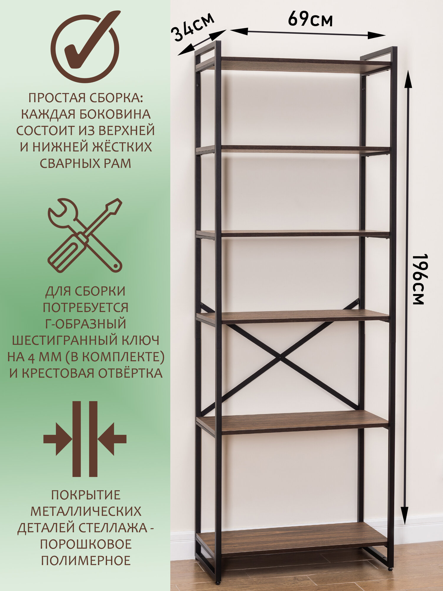 Купить Стеллаж лофт чёрный с деревянными полками, 196x69x34 см, 6 полок (цвет полок — Коричневый). Стильный дизайнерский стеллаж для дома, офиса, гардероба, кладовки. с доставкой по всей России. Стеллаж лофт чёрный с деревянными полками, 196x69x34 см, 6 полок (цвет полок — Коричневый). Стильный дизайнерский стеллаж для дома, офиса, гардероба, кладовки.: сравнение цен, характеристики, фото, актуальное наличие и цены.