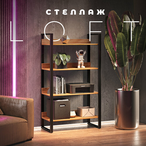 Стеллаж Монтана из 4 полок справляется с несколькими задачами: функциональное хранение вещей и зонирование пространства. Разделить прихожую от гостиной, зону отдыха от рабочего места, при этом быть компактным и стильным элементом интерьера. Стеллаж лофт размером 1390*800*400 мм изготовлен из профильной трубы 40*20 мм. На металле черное матовое порошковое покрытие. Нижняя опора регулируется, робот-пылесос с легкостью уберет пыль под ним. Полки изготовлены из ЛДСП премиум класса Lamarty, они не боятся микроцарапин и микровлажности. Собирается стеллаж легко с помощью гаечного ключа. Универсальный цвет стеллажа впишет его в любой интерьер. К нему можно добавить стол, кровать и другие виды мебели из линейки TOPLOFT.