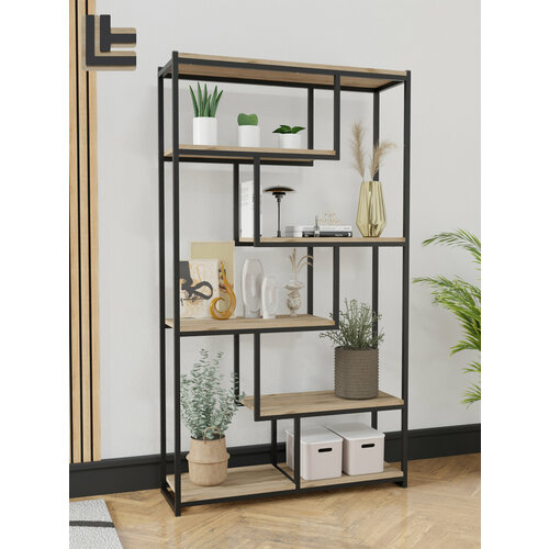 Купить Стеллаж лофт напольный «Бергер», цвет: Дуб Вотан с доставкой по всей России. Стеллаж лофт напольный «Бергер», цвет: Дуб Вотан: сравнение цен, характеристики, фото, актуальное наличие и цены.