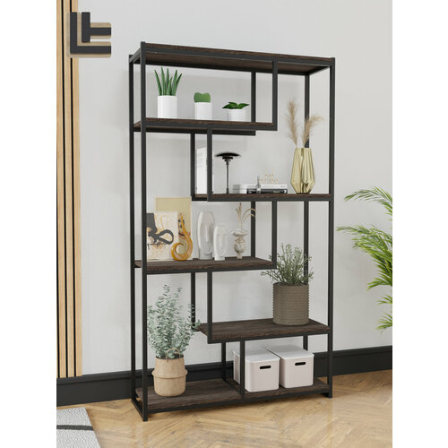 Купить Стеллаж Landloft «Бергер» Лофт, открытый, универсальный, цвет венге винтаж с доставкой по всей России.