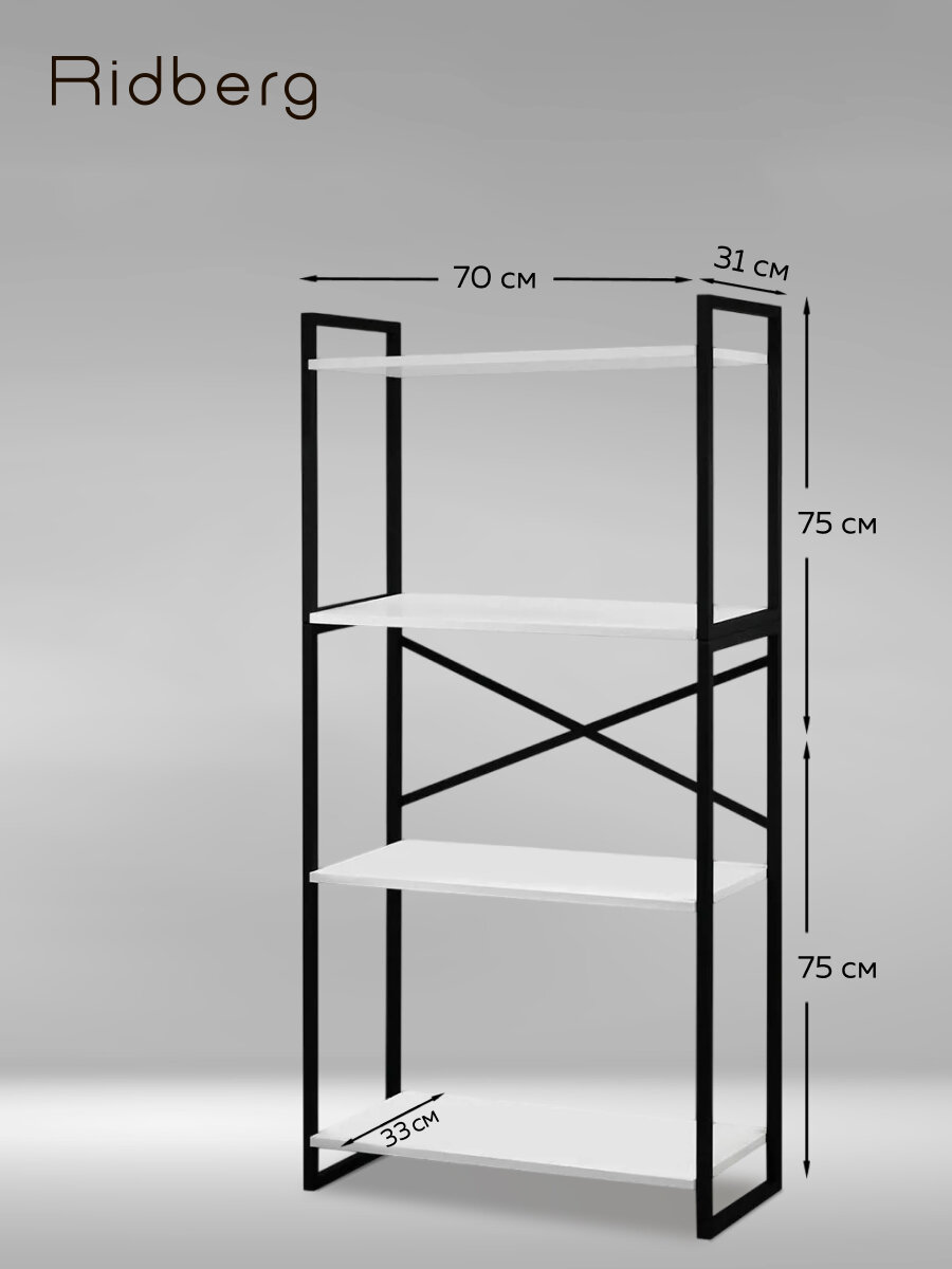 Стеллаж лофт RIDBERG CHICAGO 4 полки (White): сравнение цен, характеристики, фото, актуальное наличие и цены.