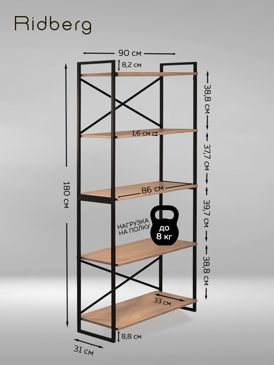 Стеллаж лофт RIDBERG CHICAGO 5 полок (Dark Oak): сравнение цен, характеристики, фото, актуальное наличие и цены.