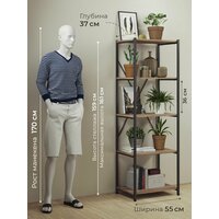 Стеллаж Лофт высокий 159 см на 5 полок, широкий 55 см, глубиной 37 см. Каркас металл черный, полки — Дуб табачный крафт: сравнение цен, характеристики, фото, актуальное наличие и цены.