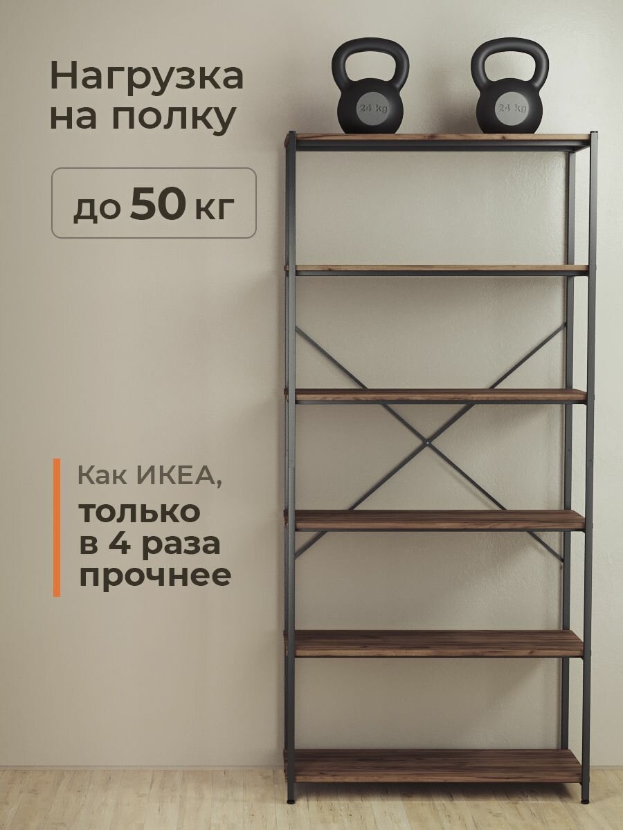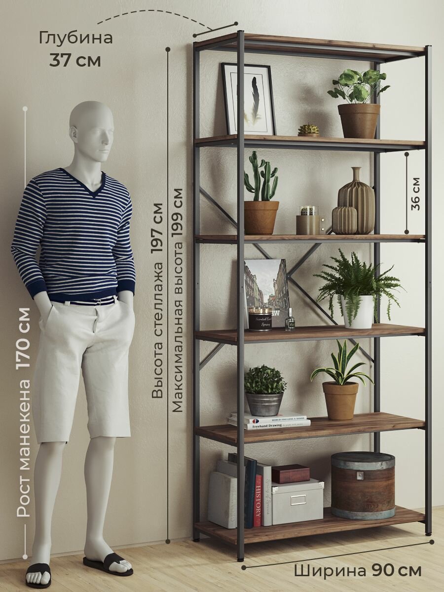 Стеллаж Лофт высокий 197 см на 6 полок, широкий 90 см, глубиной 37 см. Каркас металл черный, полки — Дуб табачный крафт: сравнение цен, характеристики, фото, актуальное наличие и цены.