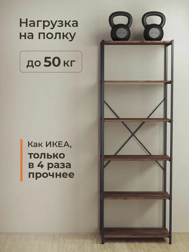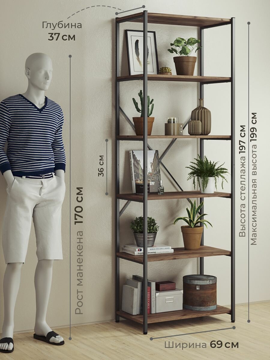 Стеллаж Лофт высокий 197см на 6 полок, широкий 69 см, глубиной 37см. Каркас металл черный, полки — Дуб табачный крафт: сравнение цен, характеристики, фото, актуальное наличие и цены.