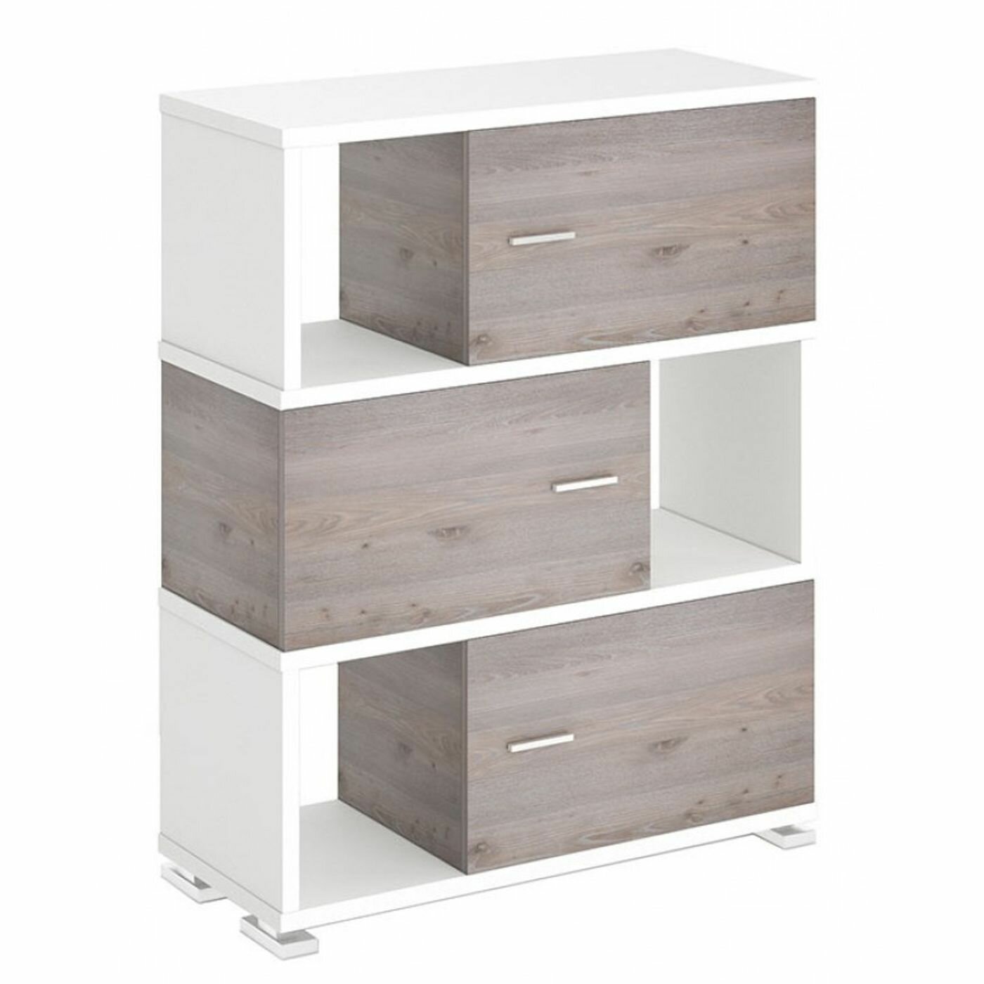 Купить Стеллаж Мэрдэс СБ-30/3 БЕН белый/нельсон, ЛДСП, 3 этажный, для гостиной и детской с доставкой по всей России.