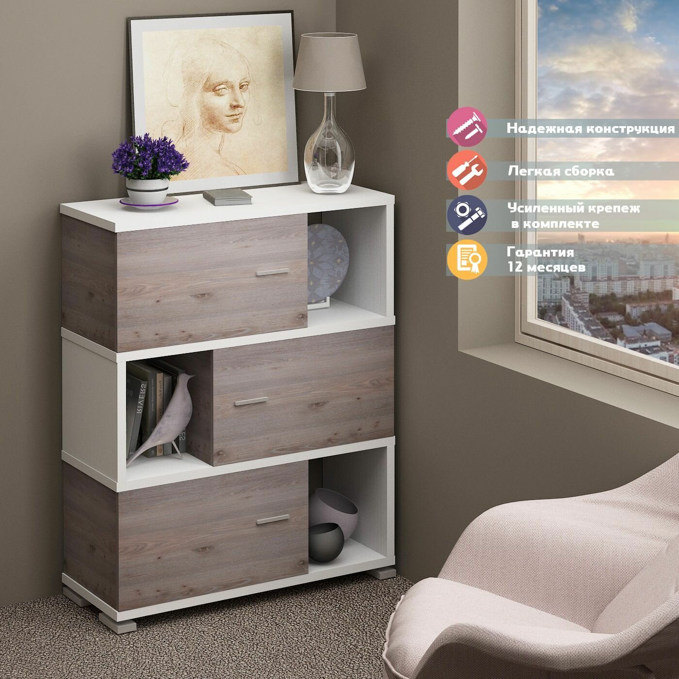 Стеллаж Мэрдэс СБ-30/3 БЕН белый/нельсон, ЛДСП, 3 этажный, для гостиной и детской: сравнение цен, характеристики, фото, актуальное наличие и цены.