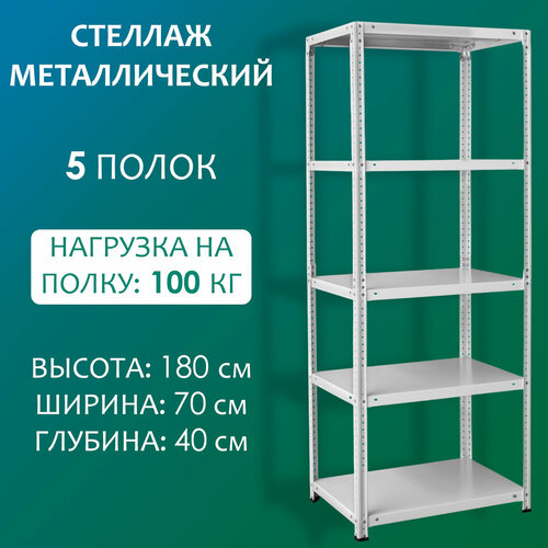 Стеллаж металлический высотой 180 см, шириной 70 см и глубиной 40 см. Полный комплект крепежей (фурнитуры) поставляется в комплекте и находится внутри упаковки между полок. Стеллаж состоит из 5 металлических полок, максимальная равномерно распределенная нагрузка на каждую полку стеллажа – до 100 кг. Стойки и полки стеллажа окрашены качественной порошковой полимерной краской светло-серого цвета (RAL 7035). Стойки стеллажа сборные (каждая стойка стеллажа состоит из двух одинаковых частей, собрав их вместе получается общая высота стеллажа), благодаря чему стеллаж упакован в компактную и надежную упаковку, которая с легкостью помещается в багажник легкового автомобиля. Стеллаж собирается на надежном болтовом креплении: болт M6x12 и фланцевая гайка M6. Для сборки стеллажа потребуется ключ на 10 мм или шуруповерт с битой на 10 мм. В комплекте со стеллажом имеется 16 оцинкованных уголков жесткости, которые следует установить на 2 полки стеллажа (согласно инструкции). Данные уголки дополнительно усиливают весь стеллаж и придают ему дополнительную жесткость. Пластиковые подпятники стоек предохраняют пол от царапин. Стойки стеллажа имеют перфорацию по всей совей длине, благодаря чему полки можно устанавливать на любой нужной вам высоте с шагом регулировки в 2,5 см. Однако нижнюю полку стеллажа следует устанавливать на высоте не более 15 см от пола. Полки имеют прочную, коробчатую, цельногнутую конструкцию. Металлические полки стеллажа усилены дополнительным ребром жесткости по нижней стороне полки, а специальные отгибаемые язычки образуют полностью замкнутый профиль полки. Надежные стойки выполнены в виде сложного фигурного профиля сечением 37x37 мм. Стеллаж этажерка для хранения подойдет для дома, квартиры, гаража, балкона, дачи, сарая, офиса, склада, архива, магазина, пункта выдачи заказов и для многих других мест. Этот многофункциональный стеллаж идеально подходит для любого помещения, где нужна этажерка для хранения предметов. На складской универсальный стеллаж можно разместить большое количество различных вещей и предметов. Железный стеллаж не будет ржаветь, так как стеллаж покрашен порошковой краской. Такой стеллаж можно использовать как стеллаж для рассады на балкон.