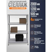 Стеллаж металлический 200х120х50 см 4 полки цельная стойка светло-серый