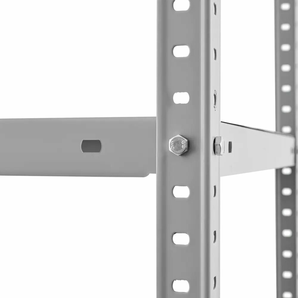 Стеллаж металлический — надёжная устойчивая конструкция, которая предназначена для погреба или гаража. Стеллаж подходит для хозяйственных принадлежностей и других предметов. 4 полки размером 180 × 80 × 50 см и толщиной 1 мм выдерживают в общей сложности 500 кг. Максимальная нагрузка на одну полку — 100 кг. Толщина окрашенного профиля из стали — 1,5 мм. Изделие крепится на винты (крепежная фурнитура в комплекте). Для удаления загрязнений рекомендуется протирать влажной неабразивной тканью или микрофиброй, а в завершение протереть сухой тканью.