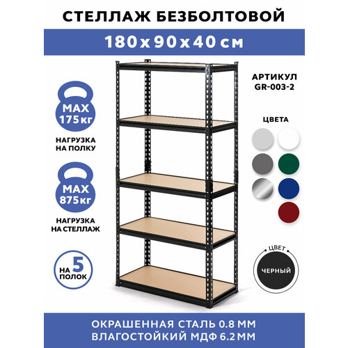 Стеллаж металлический безболтовой GASTRORAG GR-003-2, 5 полок МДФ, размеры 180х90х40 см, этажерка для кухни, мебель лофт, система хранения для дома, дачи и гаража: сравнение цен, характеристики, фото, актуальное наличие и цены.