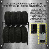 Стеллаж обеспечивает условия хранения, рекомендуемые производителями для шин без дисков: покрышки расположены вертикально, не давят друг на друга. Колесо опирается не на одну точку, его вес распределен равномерно по его бокам. Поэтому резина при длительном хранении не деформируется.